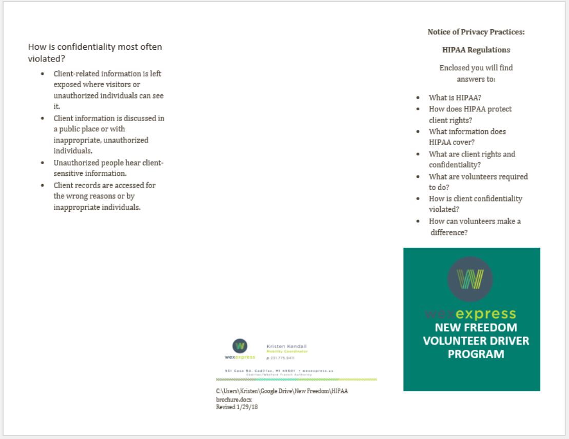 Notice of Privacy Practices (Brochure), WexExpress New Freedom Program, January 2018